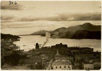 Aerial view of downtown Ketchikan and Ketchikan Spruce Mill, circa 1930 - 61.8.1.629