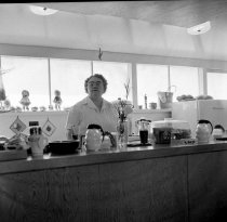 Gerde Bjorgen behind the counter of the Pacific Northern Airlines (PNA) Lunch Counter - 2003.2.63.1247
