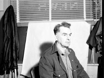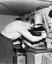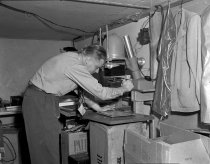 Paulu T. Saari at work in the Ketchikan Daily News Darkroom, December 1951 - 2003.2.63.1799