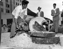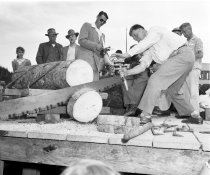 Log cutting contest in the Federal Building lot, July 4, 1953 - 2003.2.63.1842