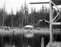 Diver diving from the platform during the Eagles Picnic at Ward Lake, June 21, 1953 - 2003.2.63.1850